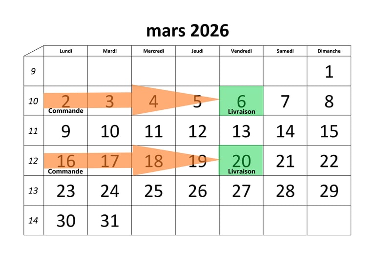 👉 Commandes Pour des raisons d’organisation avec nos producteurs, les commandes doivent être passées au plus tard le lundi midi(tous les 15 jours - voir calendrier)